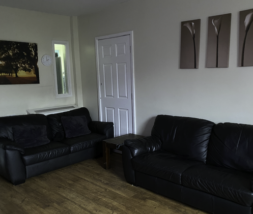 The rooms are light and spacious with high ceilings and a wide open staircase with space to walk side by side. There is one bathroom and one shower room upstairs and the downstairs bedroom has an en-suite effectively allowing the people we support to have access to their own bathrooms. The kitchen is large with a separate utility room, there is a seperate dining room and large living room. There is an outside log cabin (summerhouse) allowing plenty of opportunity for alone time.